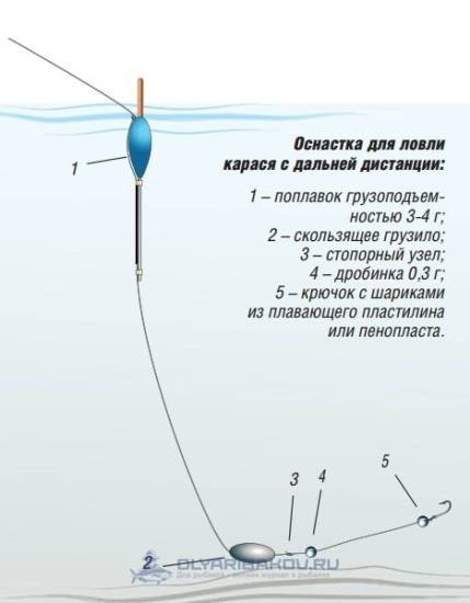 Эта снасть – самая популярная для ловли карасей больших размеров. Её состав: