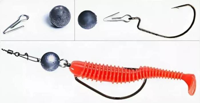 Монтаж виброхвост на офсетном крючке в виде незацепляйки