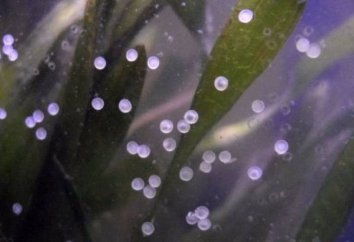 Когда пара окажется вместе, вы сможете наблюдать, как самец гоняется за самкой, а потом оба замирают на короткое мгновение. Со временем в воде будут видны мелкие икринки (их количество может достигнуть тысячи). По завершению нереста владелец должен убавить течение воды в емкости и выловить производителей из нерестовика. В противном случае они просто съедят своих будущих потомков.