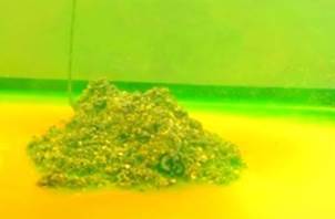 В фидерной ловле мы знаем, что прикормка должна быть рассыпчатой и хорошо вымываться из кормушки. При использовании флэт- методных кормушек смеси делают более вязкими. При попадании на дне комок прикормки короткое время остается цельным, а потом начинает рассыпаться. В результате на дне получается следующая картина.