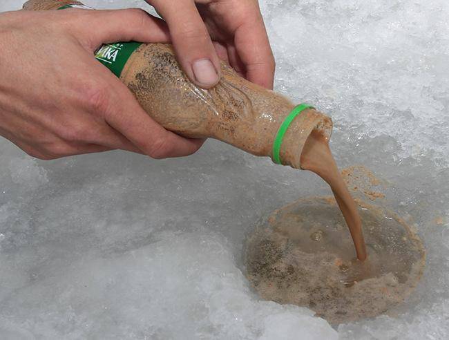 - Сделанную таким образом прикормку для зимней рыбалки в лунку добавляют мелкими щепотками.