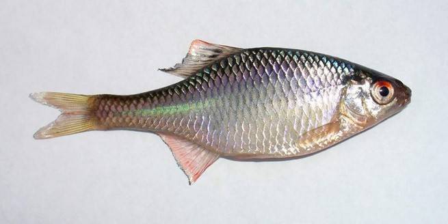 Популярной рыбкой семейства карповых является лабео двухцветный, или биколор. Он отличается необычной окраской, формой тела, напоминающей акулу, интенсивным поведением. Как вы видите на фото выше, это почти черная рыба с красными плавниками. В природе этот вид обитает в Таиланде. В неволе эту рыбку разводят по всему миру. Ярко-красный хвост, плавники и бархатно-черное тело лабео привлекают многих любителей аквариумов. Рыбка очень активная, поэтому становится заметной среди других обитателей.