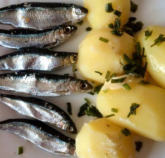 - За 20 минут до готовности картофеля добавить к нему рыбу и муку.