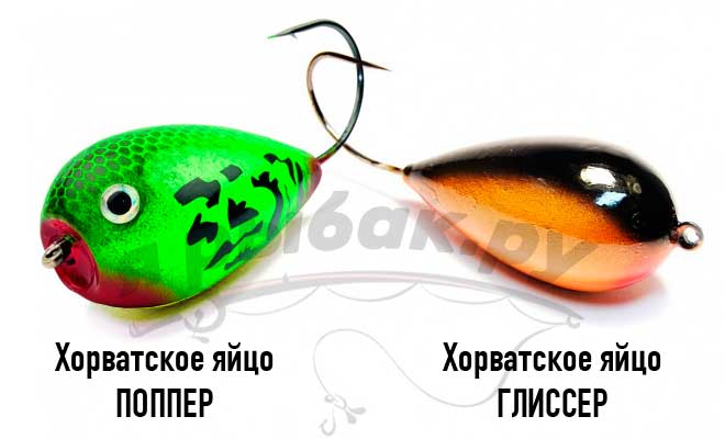 Хорватское яйцо во время проводки встречает немалое водное сопротивление, вследствие чего возникает вибрация. Ужение на эту приманку достаточно зрелищно и привлекательно. Особенно если для большего интереса к оснастке используют поппер, издающий звуки бульканий. Рыбалка на этот воблер интересна большим количеством поклевок. Причем многие поклевки могут быть холостыми, примерно на 10 поклевок будет поймано 2 – 3 рыбы.