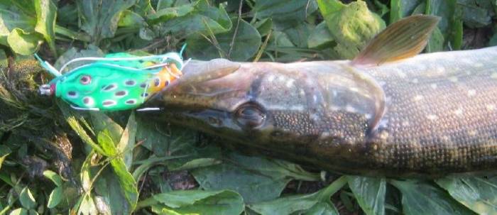 Еще одной эффективной поверхностной приманкой для ловли щуки на стоячих и заросших водоемах является силиконовая лягушка. Она входит в основной рацион щуки. Спиннингисты используют лягушки различного размера. Некоторые модели имеют лапки, а некоторые – оснащены полосками.