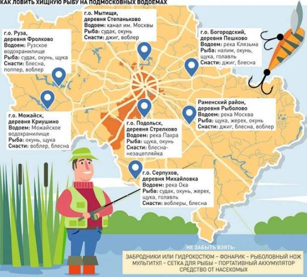 Протекает на востоке и Москва-река. Но здесь что ни место, то настоящее паломничество спиннингистов. Ехать лучше в Бронницы, но скорее не за рыбой, а за общением. Здесь постоянно оттачивают мастерство профессионалы, у которых можно «украсть» пару тройку рыбацких секретов.