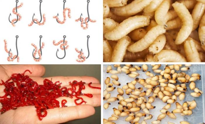 - Мотыль — только если на дворе холодное время года, начиная с поздней осени и заканчивая ранней весной. Его также разбрасывают для приманки.