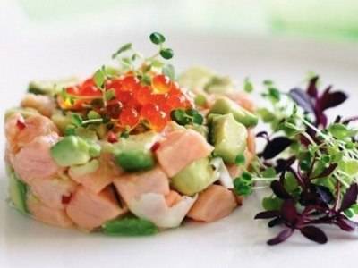 Легкая кислинка упругой мякоти лосося в сочетании с маринованным луком и пряностями образует отменную легкую закуску для приятного начала праздника. Требуется: 400 г филе лосося, сок из пары лимонов, 1 крымская луковица, 10–12 веток кинзы, стручок чили, по щепотке сахарного песка, морской крупнофракционной соли и подробленного перца.