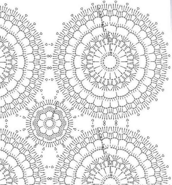 Схема очень простая и понятная, такой красивый рисунок со вставками из «паучков». Вязать такие элементы легко, с ними вообще чудесные вещи получаются, в том числе и салфетки, и покрывала.