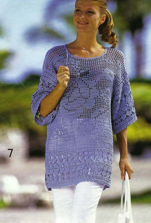 И вот еще очень милая туничка филейным вязанием, не знаю, правильно ли я ее отнесла к этому разделу, но пусть уж тут будет.