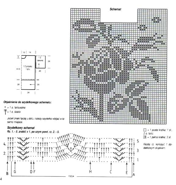 Модель из журнала по рукоделию (название мне известно), простая, легкая, чудесная! Сразу тут и описание, и схема узора, вот только выкройку не нашла ).