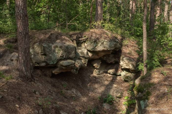 - Гора Гранное ухо — главная достопримечательность нацпарка. Здесь в середине прошлого века велась добыча диатомита, именно из-за работ появились обрывы высотой 10–12 метров.
