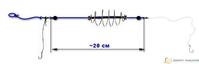 Монтаж с кормушкой пружиной для ловли на стоячем водоеме с берега