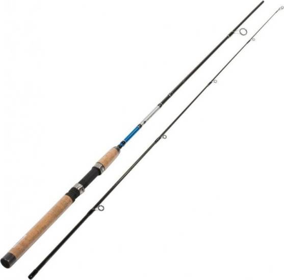 Модель ULTRA SPIN 25 2.10 можно смело назвать лучший универсальный спиннинг 2020, длина палки 270 см, строй – средний, тест изменяется от 5 до 25 г. Весит спиннинг довольно много – 250 г, однако против него не может устоять даже щука весом в дюжину кило. Жесткая палка посылает блесну на несколько десятков метров, чутко реагирует на поклевку, не ломается при сопротивлении хищника. Единая рукоятка сделана из пробки, ее длина почти 60 см, можно делать силовой заброс двумя руками.