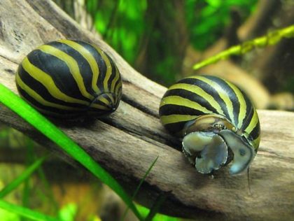 Самая популярная разновидность с броской полосатой окраской. В естественных условиях широко распространены в Кении и ЮАР. Улитка зебра вырастает до 3.5 см.