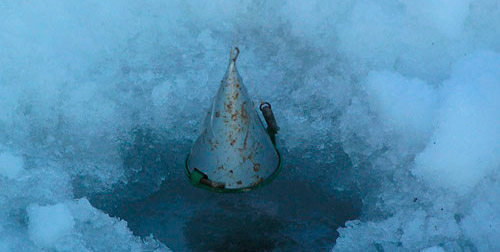 Можно воспользоваться хитрой уловкой и поместить в пол-литровую банку или прозрачную пластиковую бутылку живого ершика или пескаря. После этого, такой «аквариум» следует опустить в лунку, что привадит хищника и, долго будет удерживать его возле лунки.