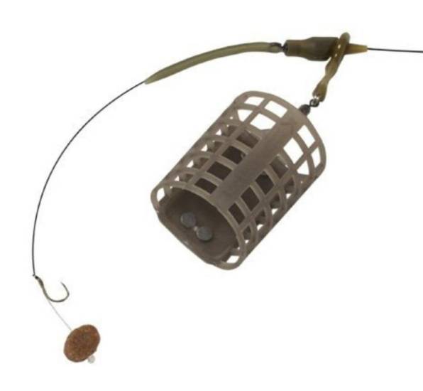 Основан метод на донной ловле, когда крючок с приманкой или насадкой находится непосредственно на контейнере с прикормкой. Плюсов в монтаже много: