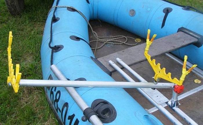 - Если рыболов взял с собой стандартную снасть длиной 3,3…3,6 м, то ее придется укладывать на два борта или использовать в качестве подставки носовую или кормовую часть.