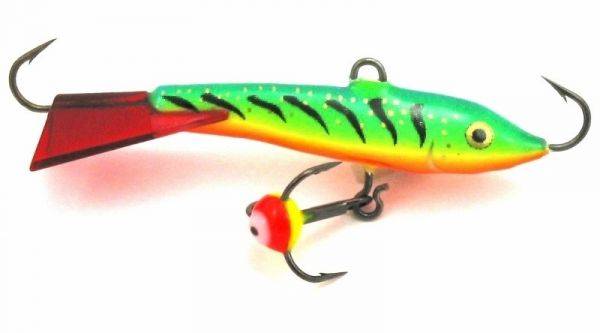 Металлическая рыбка с подвесным тройником и впаянным одинарником, имеющая к тому же лопасти в районе хвоста, во время проводки подо льдом производит феерические, с точки зрения хищника, кульбиты и пируэты. Неудивительно, что балансир стал популярнейшей приманкой по ловле щуки, судака и окуня.