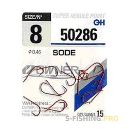 10. 50286 SODE Аккуратные крючки из тонкой проволоки, очень хорошо секут рыбу. Оптимальные крючки для трудовых рыбалок, когда на счету даже самая мелкая рыбешка. Маленькие насадки, один два мотыля с подсадкой опарыша, ловля плотвичек и другой мелкой рыбы на тонких поводках – вот применение данной модели. Выпускается в двух цветах 50282 – бронзовый, 50286 – красный.