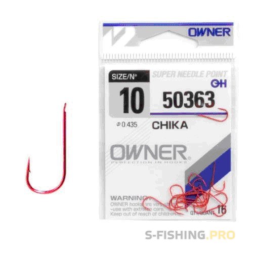 Owner серия 50001 — Тонкие крючки с лопаткой, синего цвета. Овнер позиционирует их как подходящие для лова на «тинку» (зелень). Для фидера нередко используются. Насадка может быть и навозный червь и выползок и зерна. Короче все, что соответствует номеру и рыбе. Тонкая проволока на этой серии, дает повод использовать их для ловли не очень крупной рыбы.